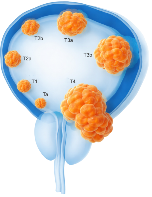 Das Stadium des Blasenkrebs ergibt sich aus der Eindringtiefe des Tumors in die Blasenwand sowie den Aggressivitätsgrad.